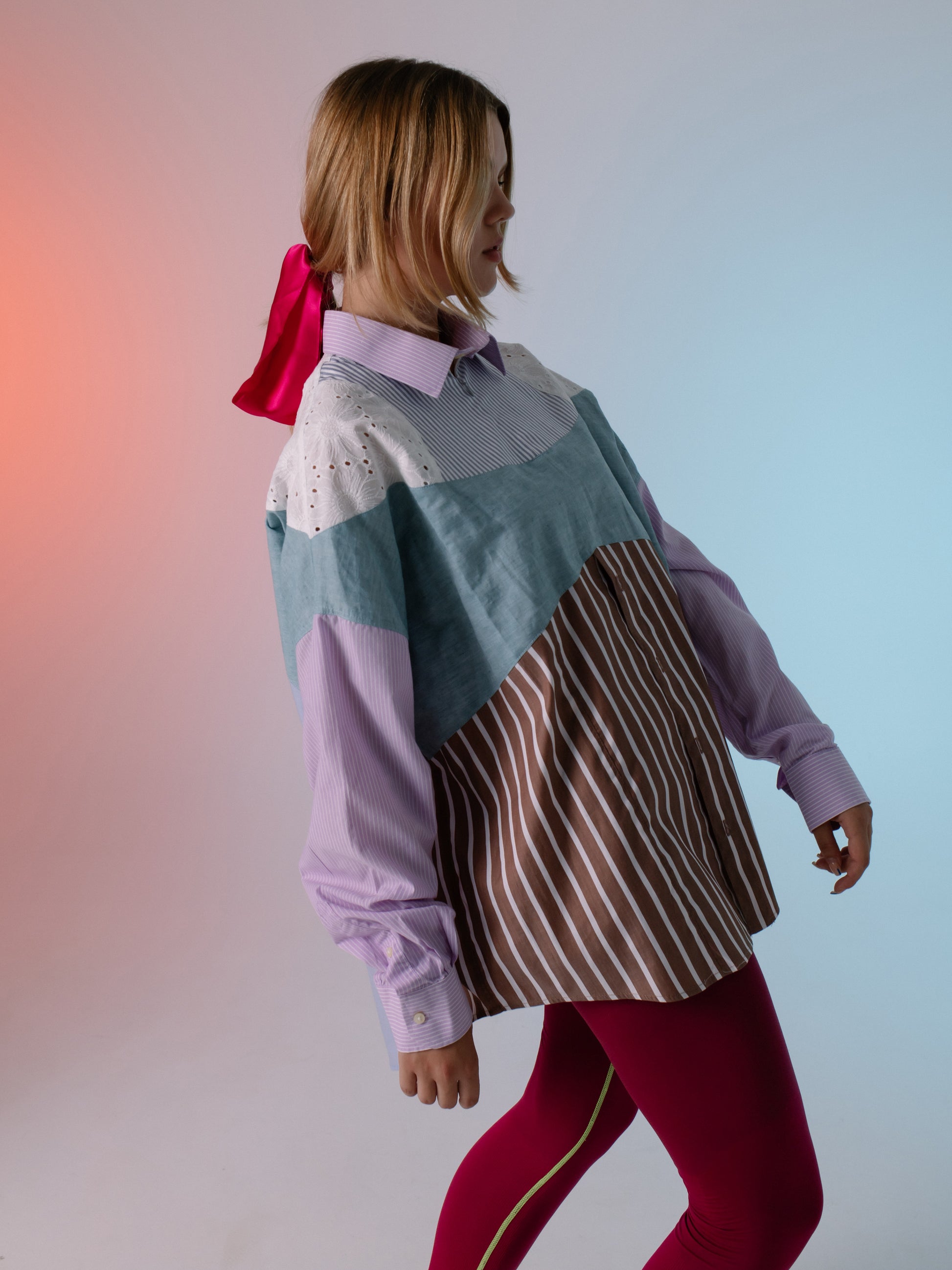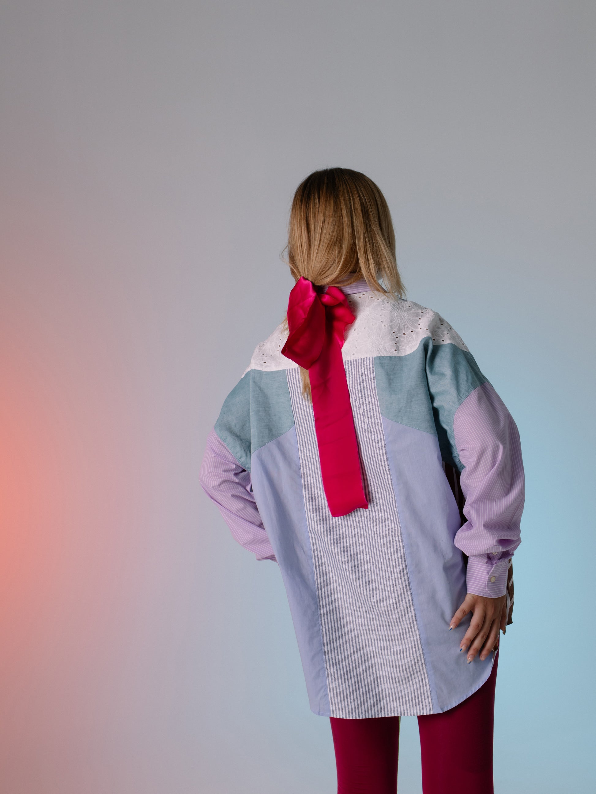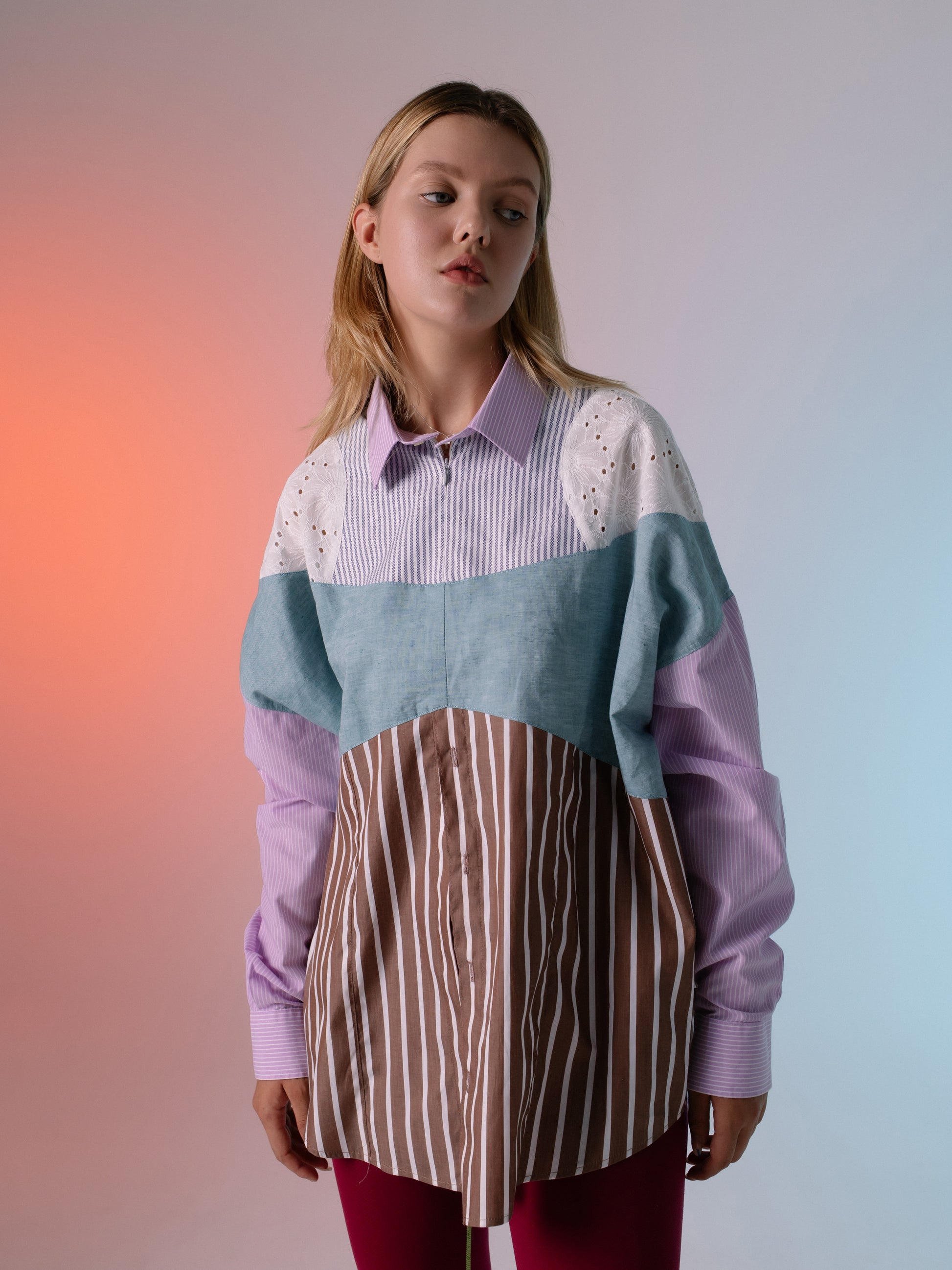 The shirt on the photo was made from vintage materials. We'll need time to repeat this shirt from new fabrics for you.